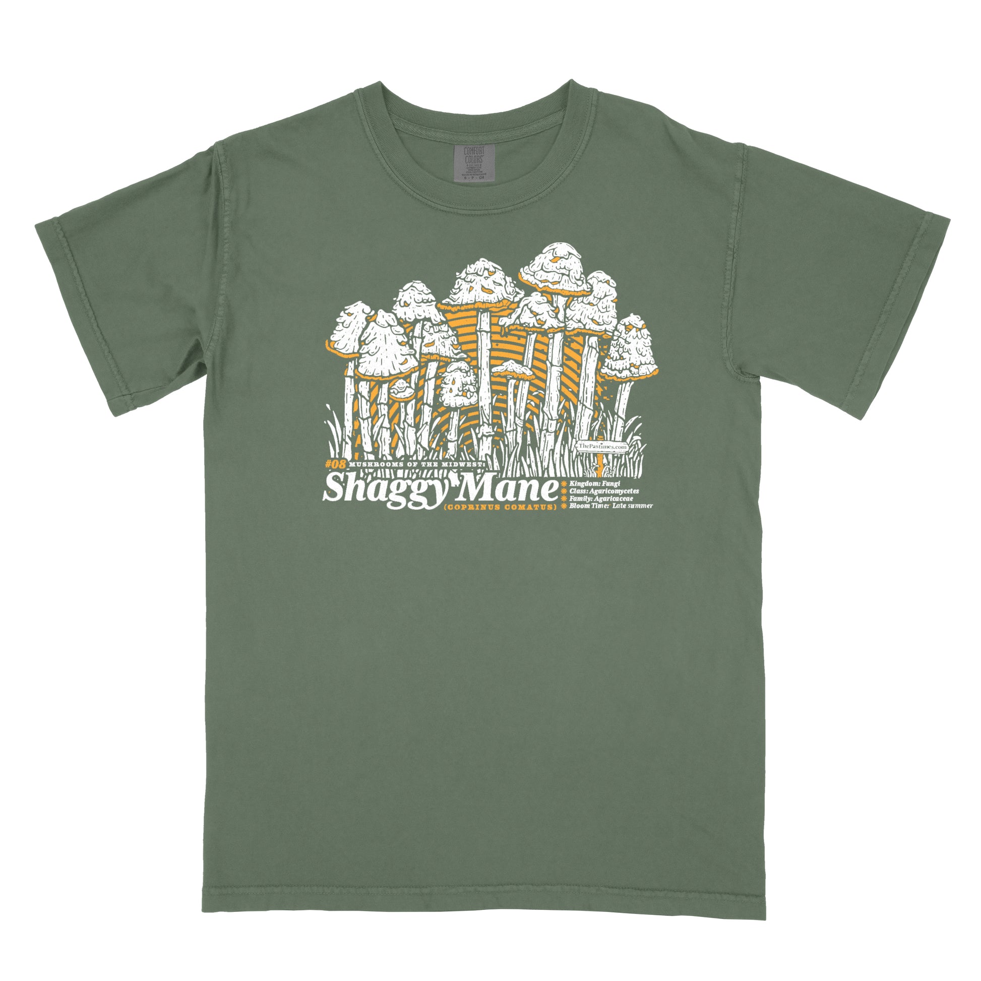 “Shaggy Mane” printed with water-based inks on 100% cotton Comfort Colors tee.