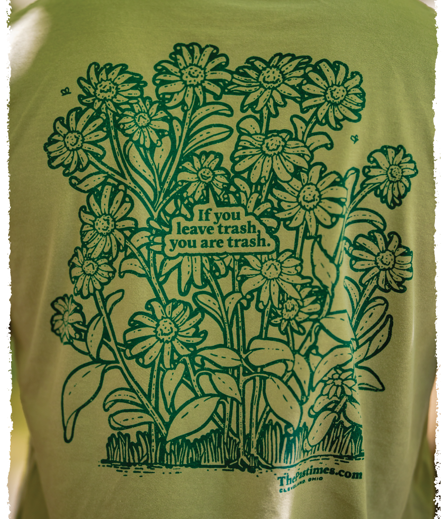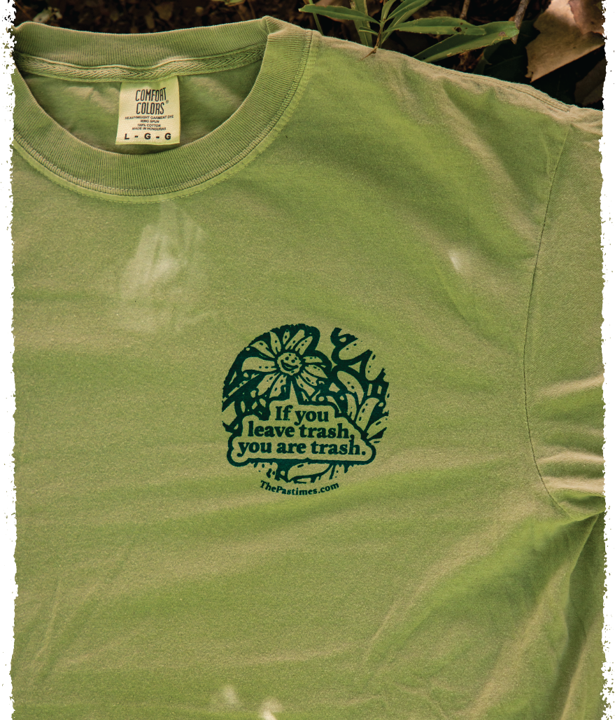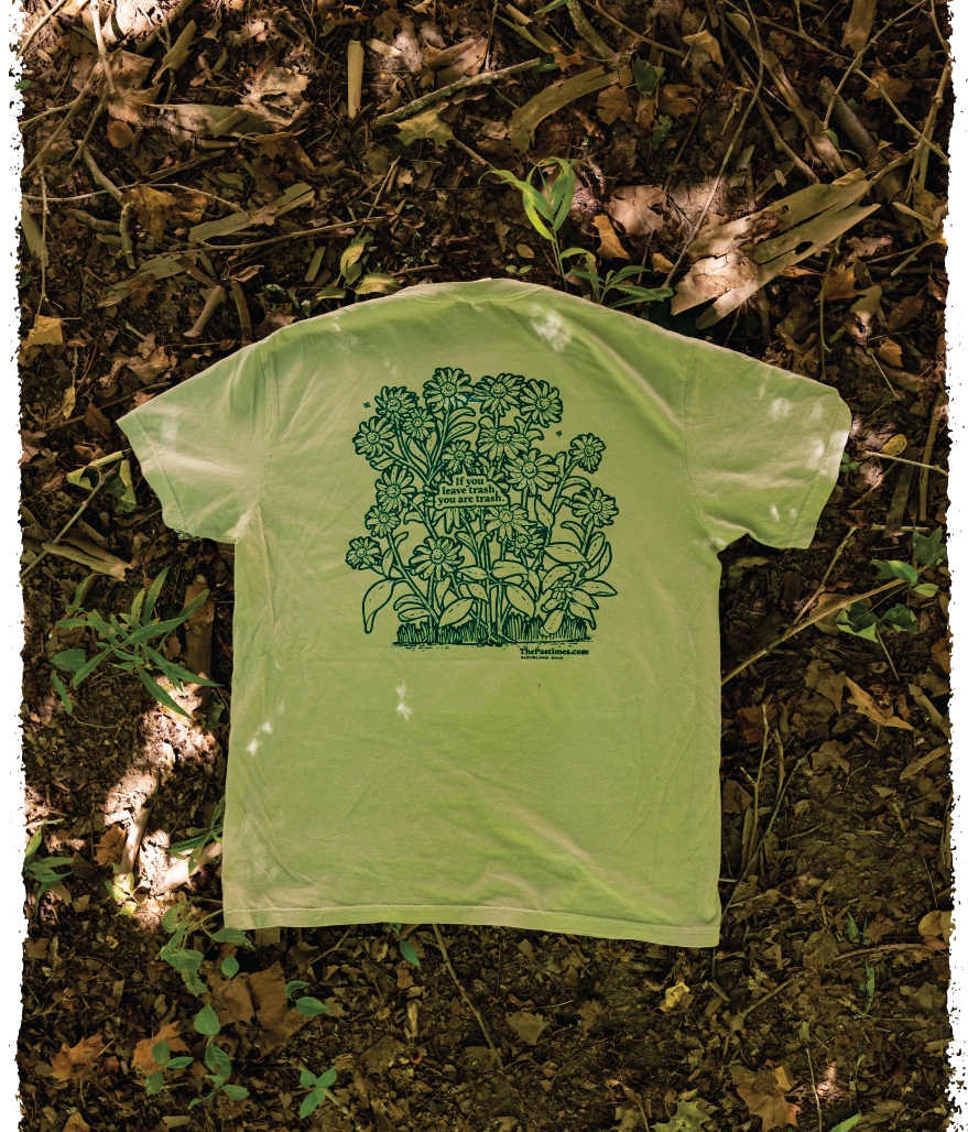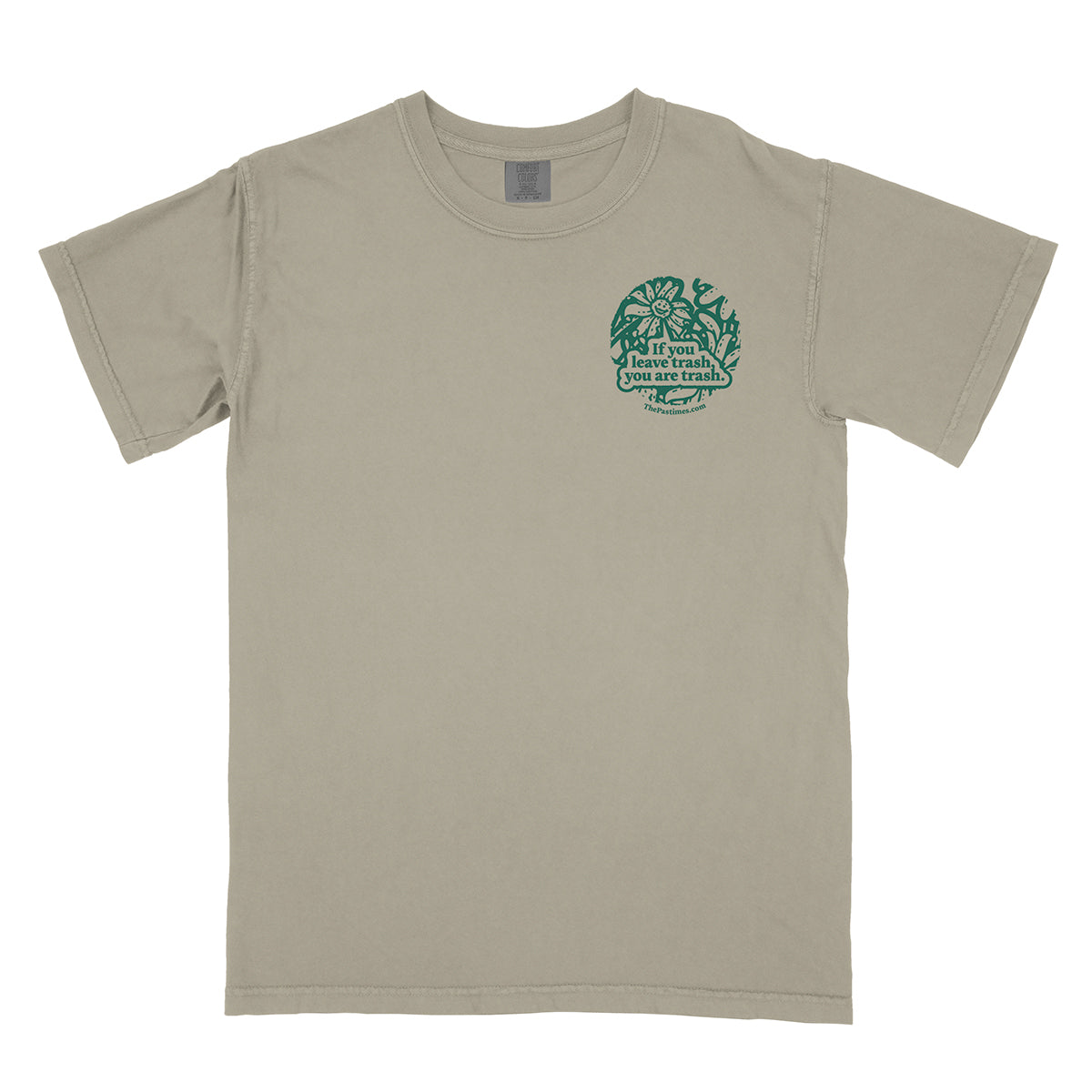"If you leave trash, you are trash" printed with water-based inks on 100% cotton Comfort Colors tee.