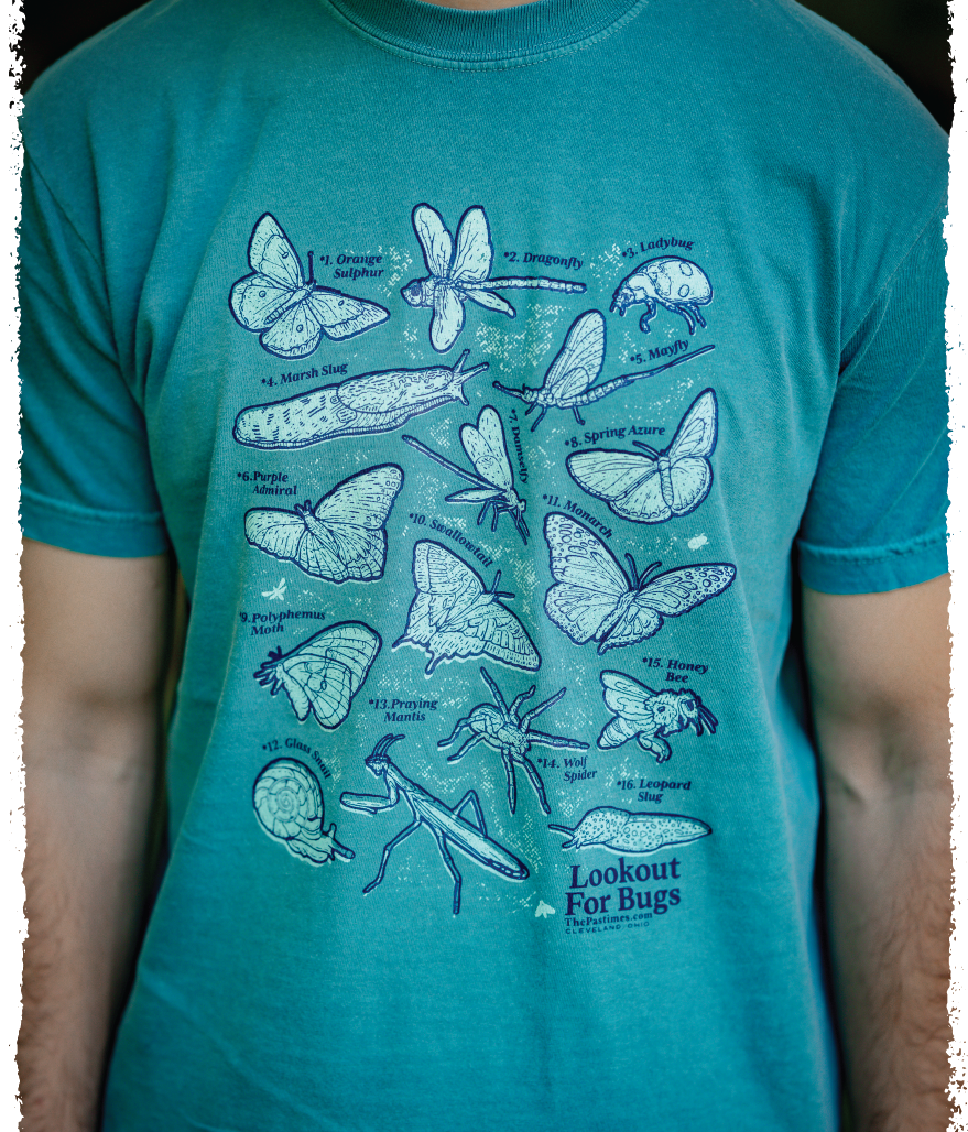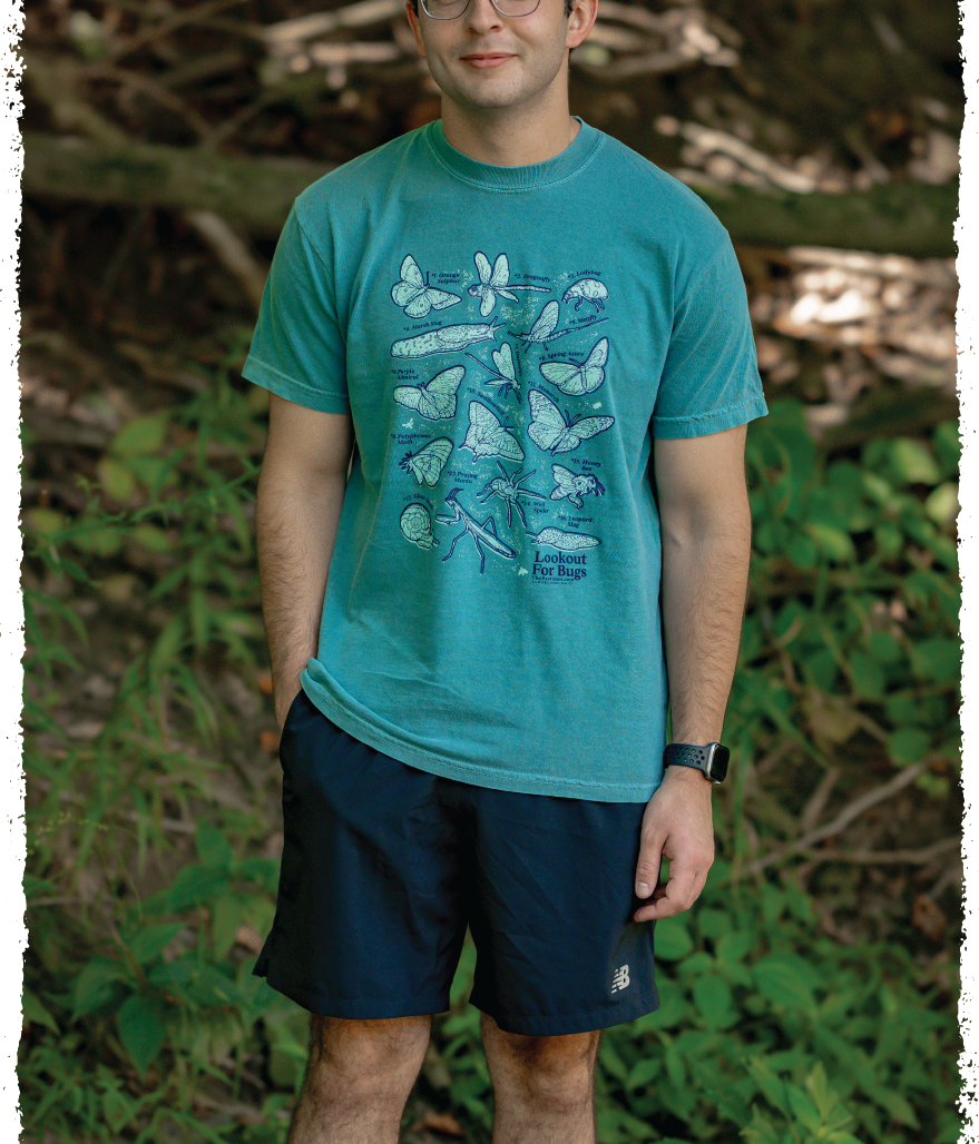 “Lookout for Bugs” printed with water-based inks on 100% cotton Comfort Colors tee.