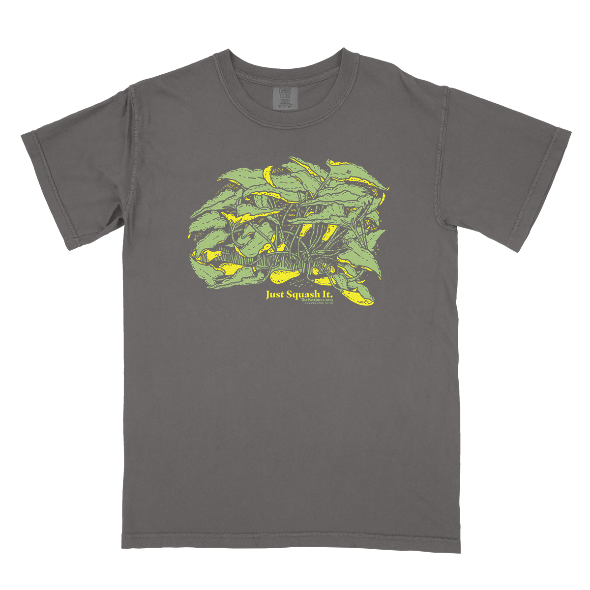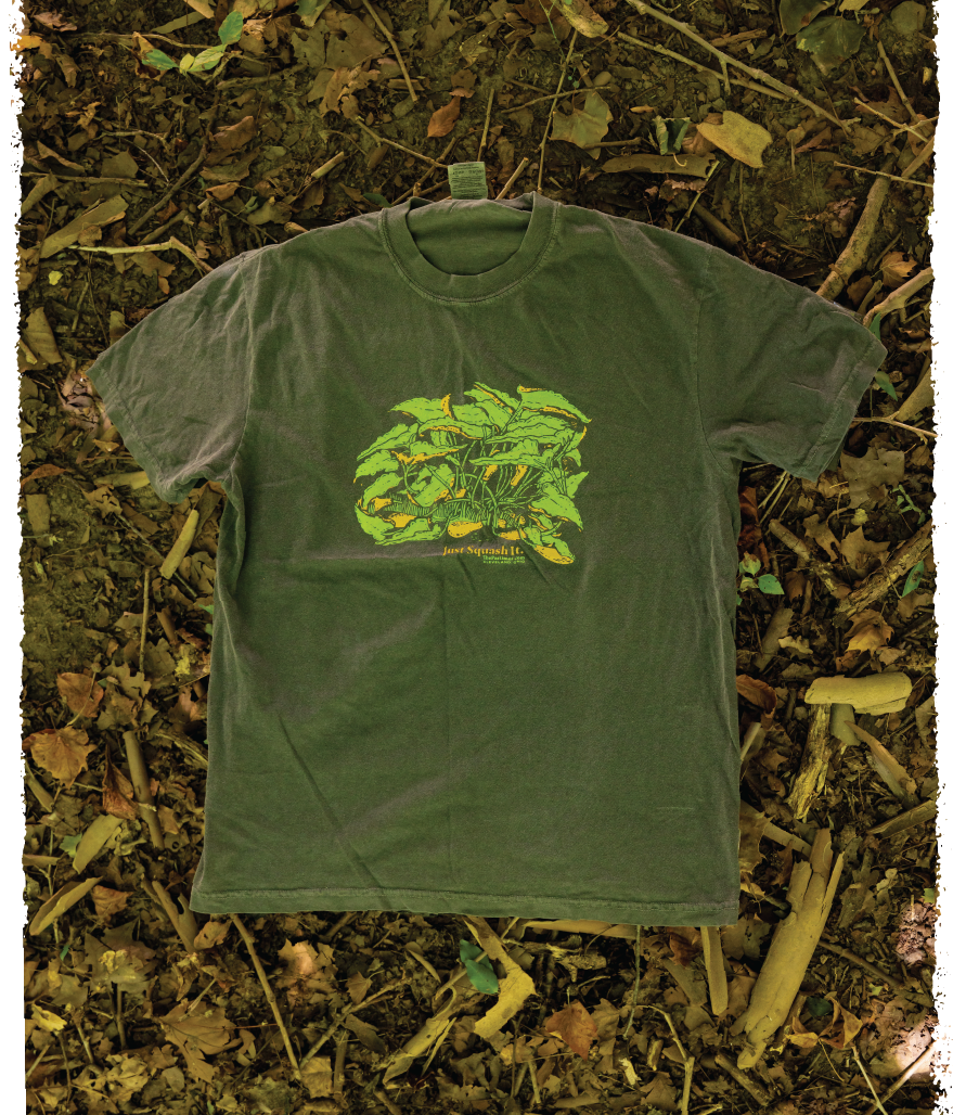 “Just Squash It” printed with water-based inks on 100% cotton Comfort Colors tee.