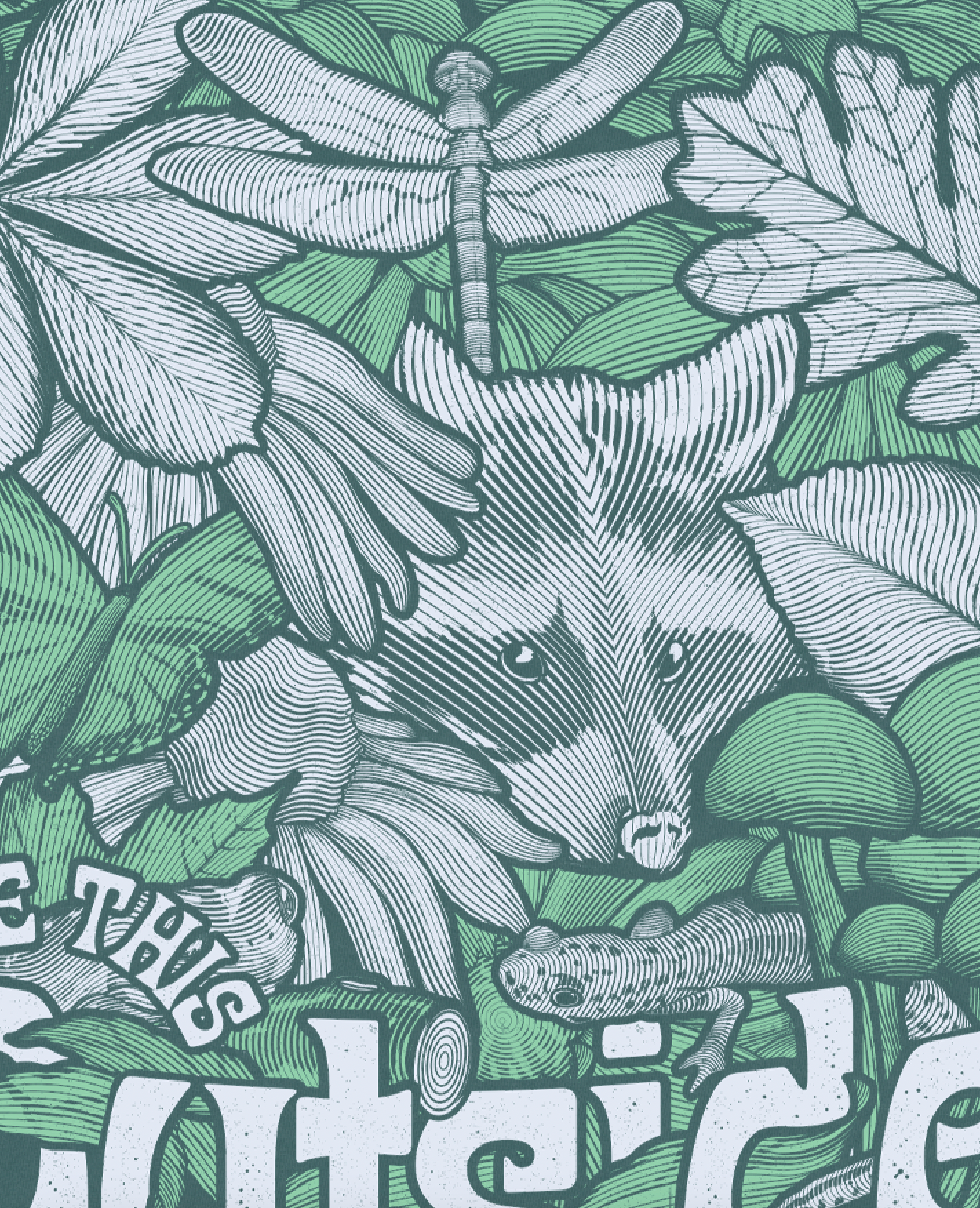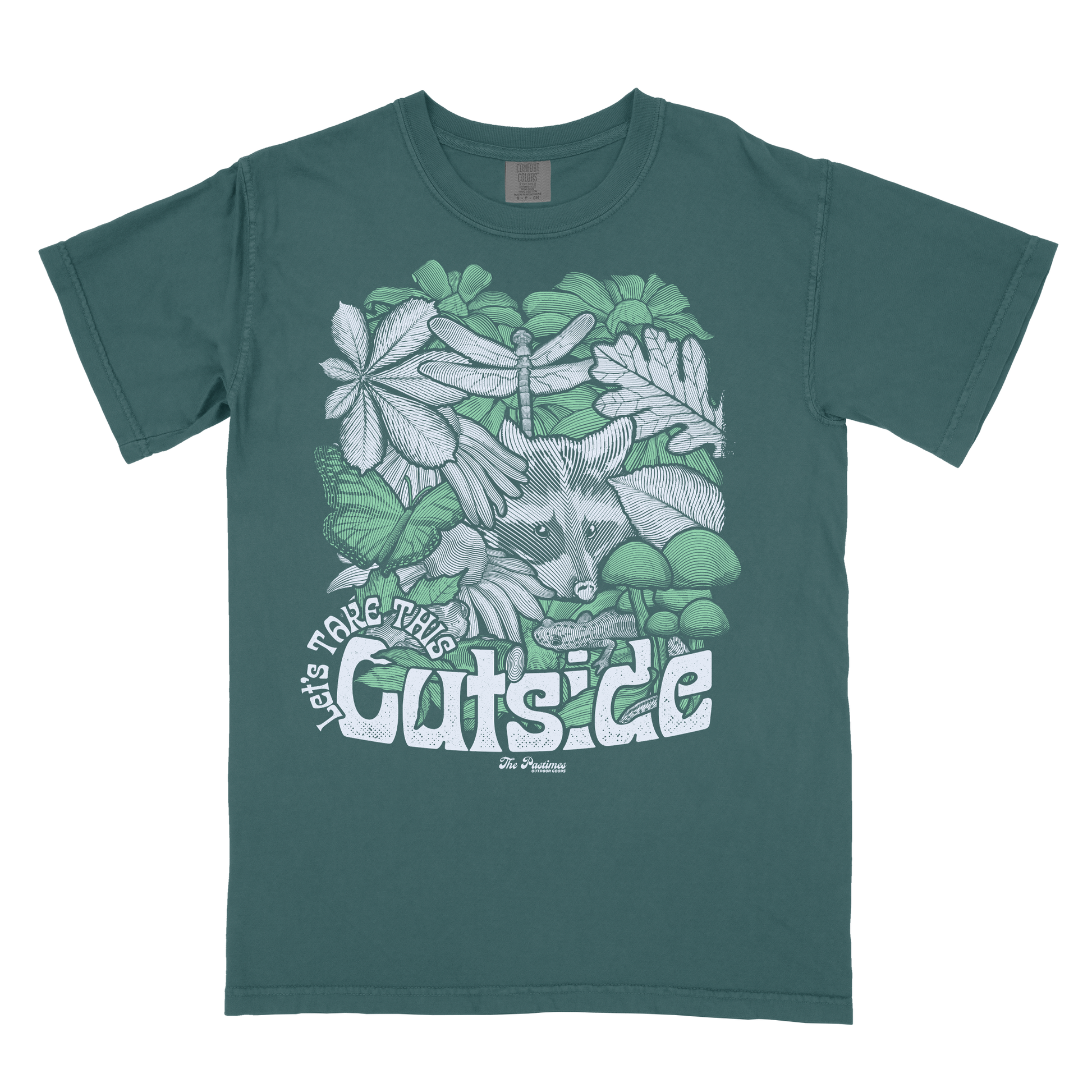 “Let's Take This Outside” printed with water-based inks on 100% cotton Comfort Colors tee.
