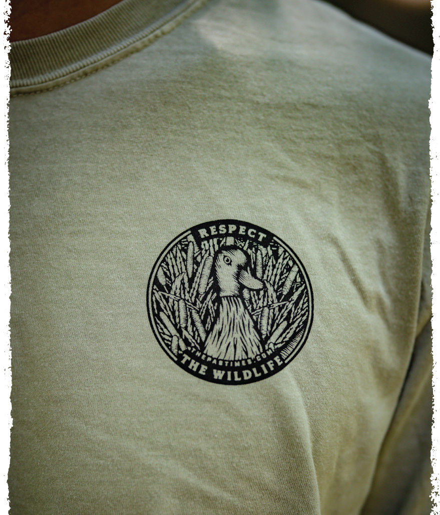 “Respect the Wildlife” printed with water-based inks on 100% cotton Comfort Colors tee.
