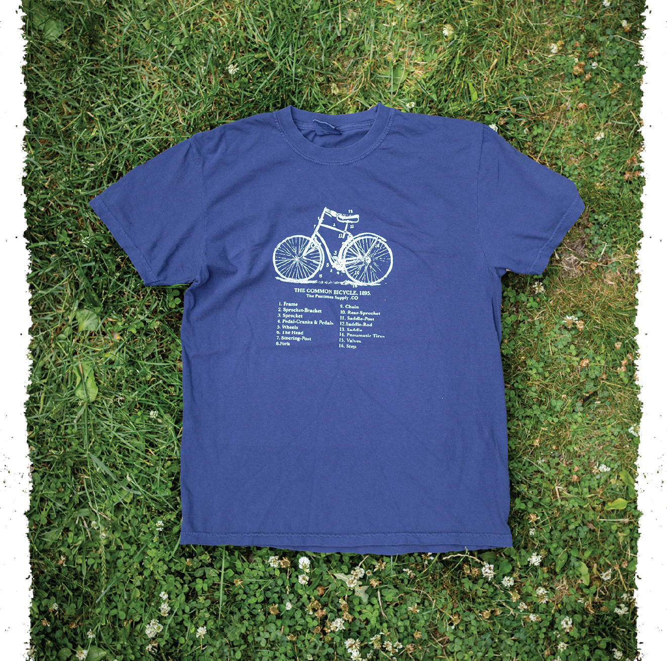 “The Common Bicycle” printed with water-based inks on 100% cotton Comfort Colors tee.