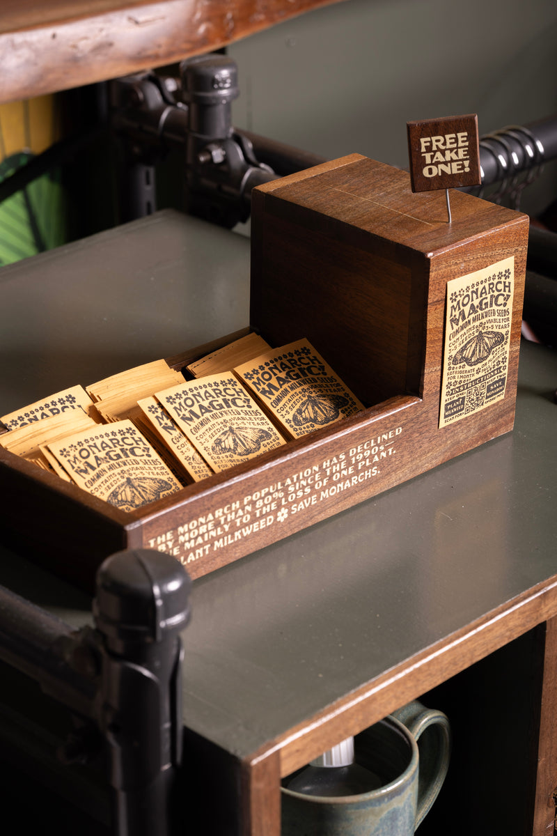 How we help: we harvest common milkweed seeds from native plants, then distribute them in small printed envelopes at the café.Free Seed pack availability is dependent on stock!