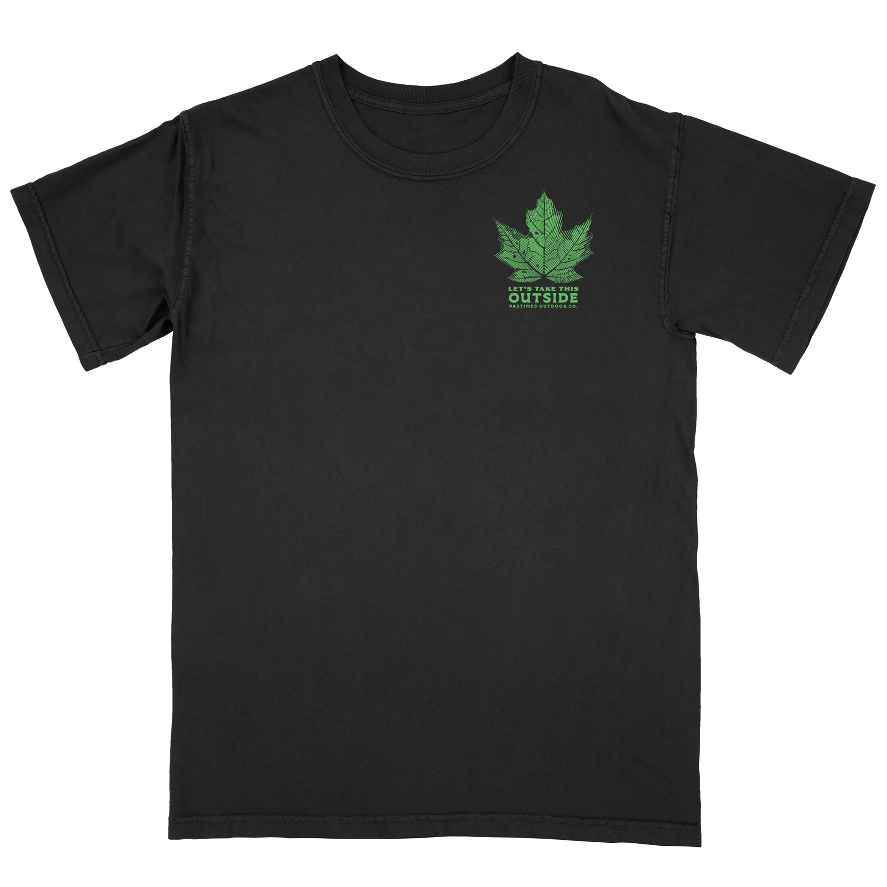 “Let's Take This Outside” printed with white and green water-based inks on 100% cotton Comfort Colors tee.