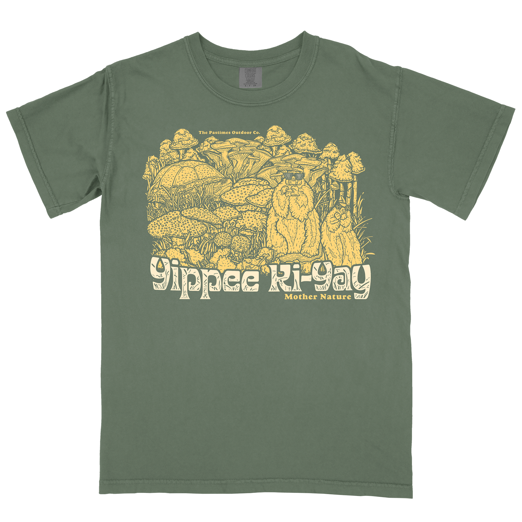 “Yippee Ki-Yay” printed with water-based inks on 100% cotton Comfort Colors tee.