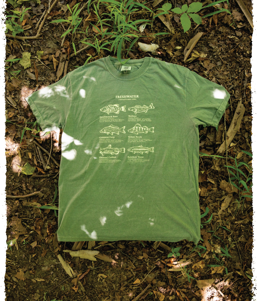 “Freshwater Fishermen” printed with water-based inks on 100% cotton Comfort Colors tee.